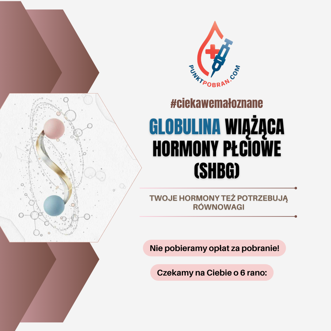 Globulina wiążąca hormony płciowe (SHBG) to białko, które transportuje hormony płciowe, takie jak testosteron i estrogeny, regulując ich dostępność w organizmie. Badanie poziomu SHBG jest pomocne w diagnozowaniu zaburzeń hormonalnych, takich jak zespół policystycznych jajników (PCOS), hipogonadyzm, czy problemy z płodnością. Wysoki poziom SHBG może występować w ciąży, przy chorobach wątroby lub stosowaniu hormonów, natomiast niski poziom może być związany z otyłością, insulinoopornością lub niewydolnością wątroby.